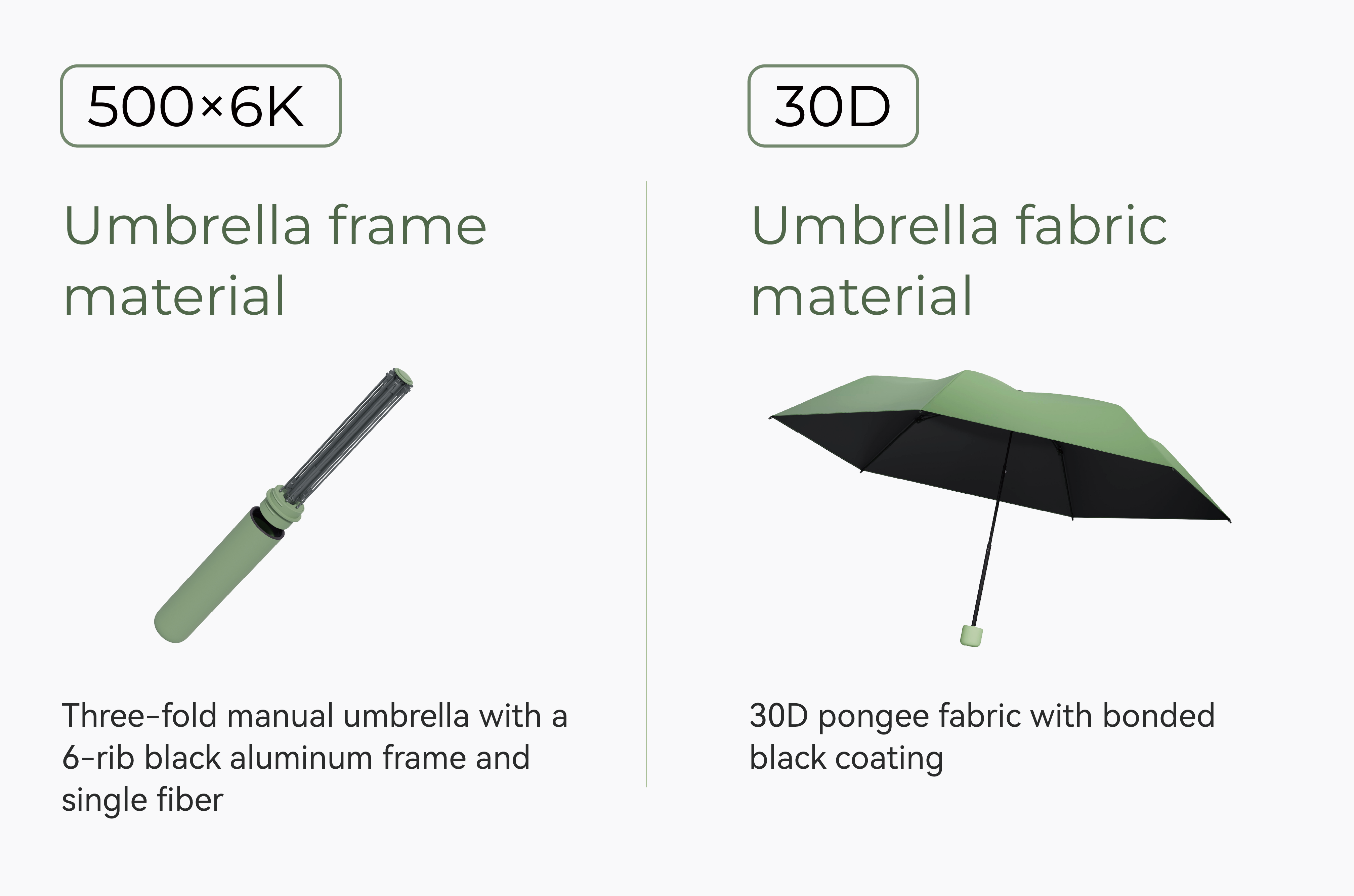 • 30D pongee fabric — soft yet durable
